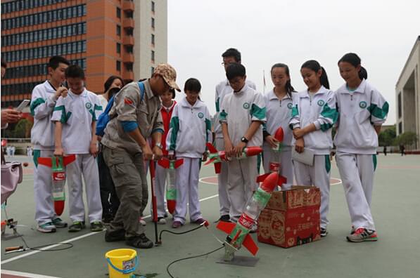 讲座结束后,同学们亲自动手组装水火箭、小力士火箭及模型火箭,并现场进行了放飞比赛。“今天真是太有趣了,在老师的指导下,我们进行了一场爱航天、做箭模、放火箭的科普活动。”女同学温也青也加入到了模型制作当中。