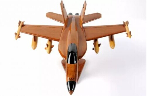 木制模型可以很精美。木头这种材质的特点使其特别适合表现飞行器的曲面特征。基于匠人出色的观察力和优秀的工艺水平,这架F/A-18木制模型显得张力十足。