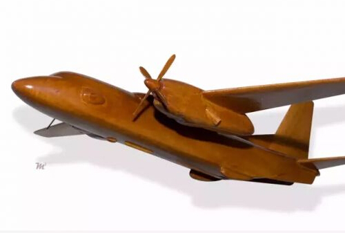木制的安东诺夫An-26军用运输机模型。无论是螺旋桨的细节还是机身的结构都被表现得淋漓尽致。就连机头一侧的鼓包式观察窗也体现在了模型身上。木头的厚重与大型运输机的重量感之间形成了默契。