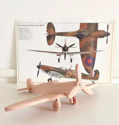 木制的喷火战斗机模型,其椭圆形的机翼看起来非常优雅。