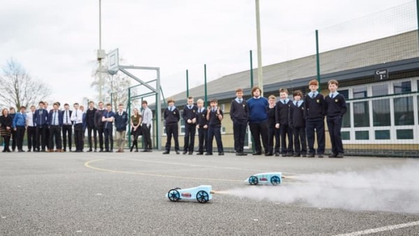 据外媒报道,近日英国各地的学生都被邀请参加火箭动力汽车模型比赛