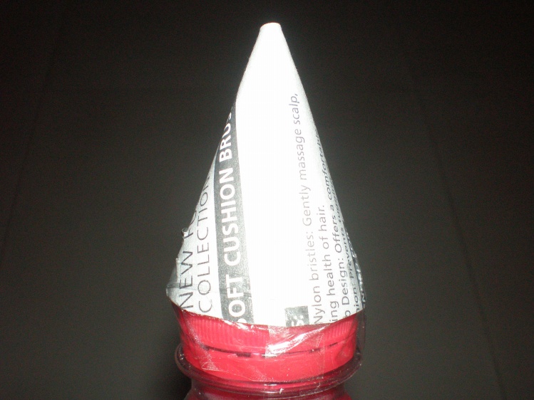 搞定火箭模型主体部位,新的问题又出现了,箭身前端圆锥状的整流罩咋整呢?有了,用纸皮做个不就行了,说干就干,我们便找来薄的纸皮,圈成圆锥状后套到矿泉水瓶盖上,再用透明胶带固定住。这样火箭的主体部位就完成了,再来就是把两根纸皮筒钜成四根长度一样的推进器。