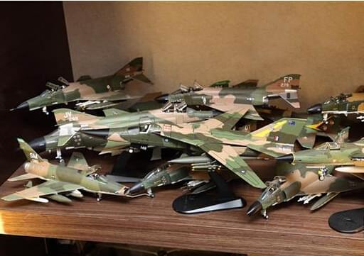 要问彭华干最爱是什么?他的眼神立即瞄进了“模型房”,一进入干哥家原本规划的书房,映入眼帘的,就是架子上一排排的分格列内,每格都排满了数十架飞机模型,每个格内也都有不同的主题,有的是熊猫式战斗机系列,有的是打越战的迷彩F4战机系列,还有苏联时代的米格机系列,其中还藏着一个专区陈列二次大战来的德国豹系列坦克车模型,更让人看的眼花撩乱。