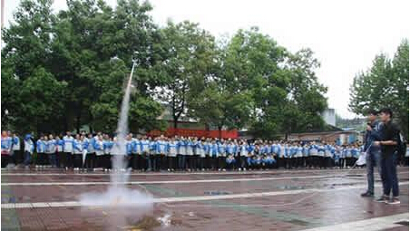4月15日上午,西北工业大学科创社的成员来陕西省汉台中学进行自制火箭模型发射表演,高一年级部分班级学生到场观看,随着火箭模型的呼啸升空,同学们的激情也被调动起来,现场欢呼声四起。本次活动促进了学生们对航空航天知识的了解,激发了同学们立志成才、献身科学的热情。