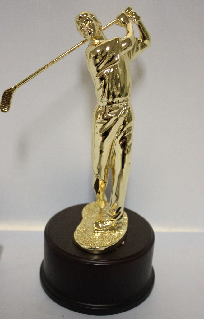 产品描述:高尔夫倡导“诚信自律,关爱他人”的人文精神,以“人”为主旋律,是为体现高尔夫健康和谐的主题,弘扬高尔夫精神文化礼仪,塑造一个精神时尚,成为一个名族的象征。轻巧的人物造型,有着抽象的温文尔雅,挥杆旋转的体态之美,透过撩人的纤纤曲线,映射出高尔夫礼仪文化的高尚情操。细细品味,静谧的世界,绿草蓝天,绅士手抚球杆,尽显精彩活力。